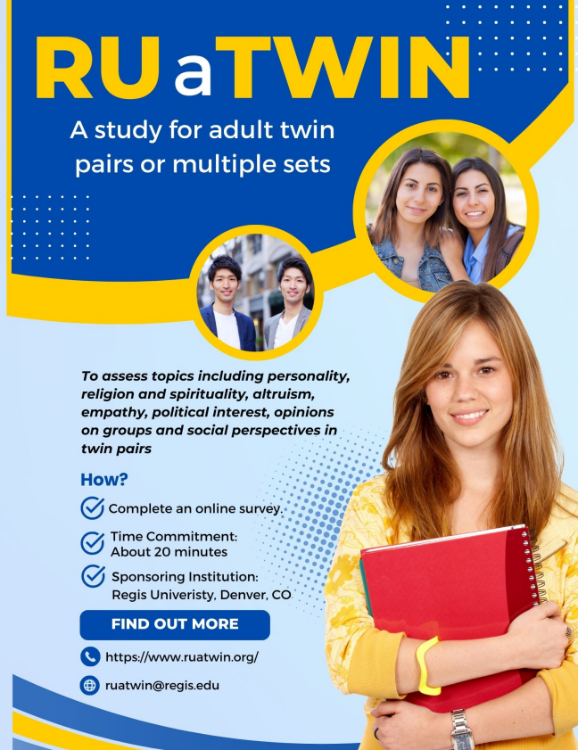 PARTICIPANTS NEEDED: Adult twins. Both twins in a pair (or all multiples in a set) will need to complete the online survey.